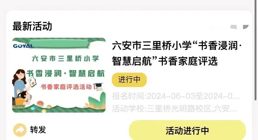 為慶祝六一國(guó)際兒童節(jié),六安市三里橋小學(xué)聯(lián)合國(guó)耀科技開(kāi)展“書(shū)香浸潤(rùn)·智慧啟航”書(shū)香家庭評(píng)選活動(dòng),通過(guò)“七彩映山紅”小程序上傳緊扣“書(shū)香家庭”主題的視頻,要求突出濃厚的家庭閱讀文化,體現(xiàn)家庭書(shū)香氛圍。