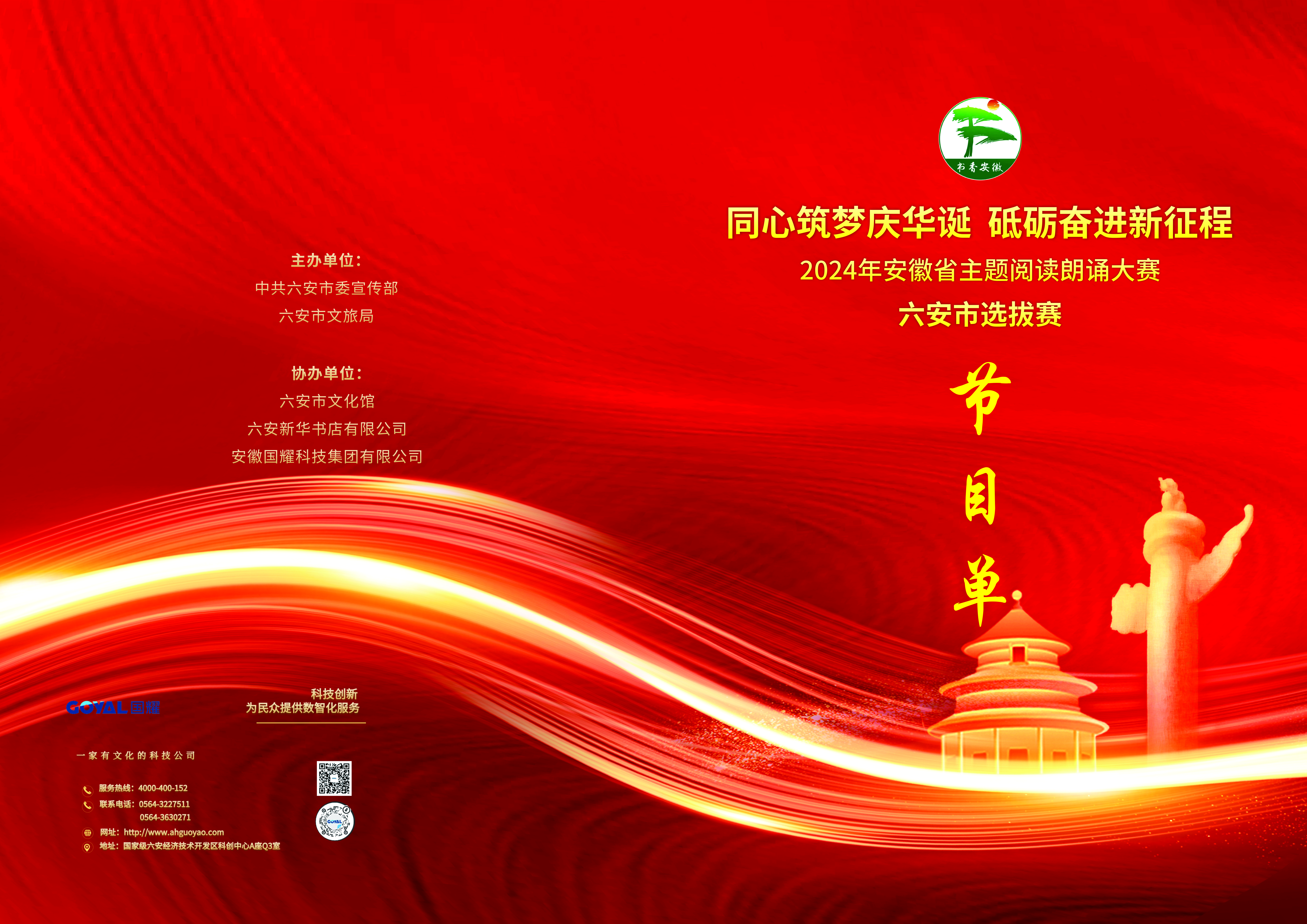“同心筑夢慶華誕 砥礪奮進(jìn)新征程”2024年安徽省主題閱讀朗誦大賽六安市選拔賽由中共六安市委宣傳部、六安市文化和旅游局主辦,六安市文化館、六安新華書店有限公司、安徽國耀科技集團(tuán)有限公司協(xié)辦。活動(dòng)自開展以來,引發(fā)了廣泛關(guān)注和熱烈響應(yīng),來自全市的文學(xué)愛好者、學(xué)生代表以及各界群眾踴躍報(bào)名參加,大賽競爭激烈。