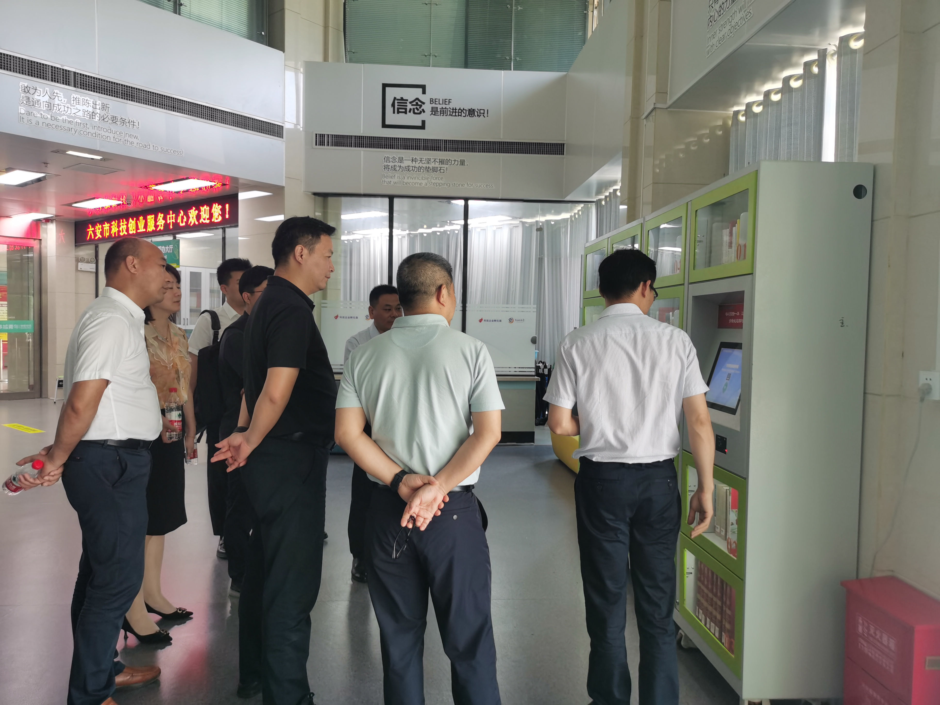 國耀公司總經(jīng)理陳浩全程陪同并向鄭總一行詳細介紹了國耀公司的發(fā)展歷程、經(jīng)營范圍、戰(zhàn)略規(guī)劃等,中通服和信科技有限公司鄭總對國耀公司的企業(yè)創(chuàng)新及發(fā)展表示高度贊揚,并對國耀公司自主研發(fā)的智能圖書柜產(chǎn)品給予充分肯定。