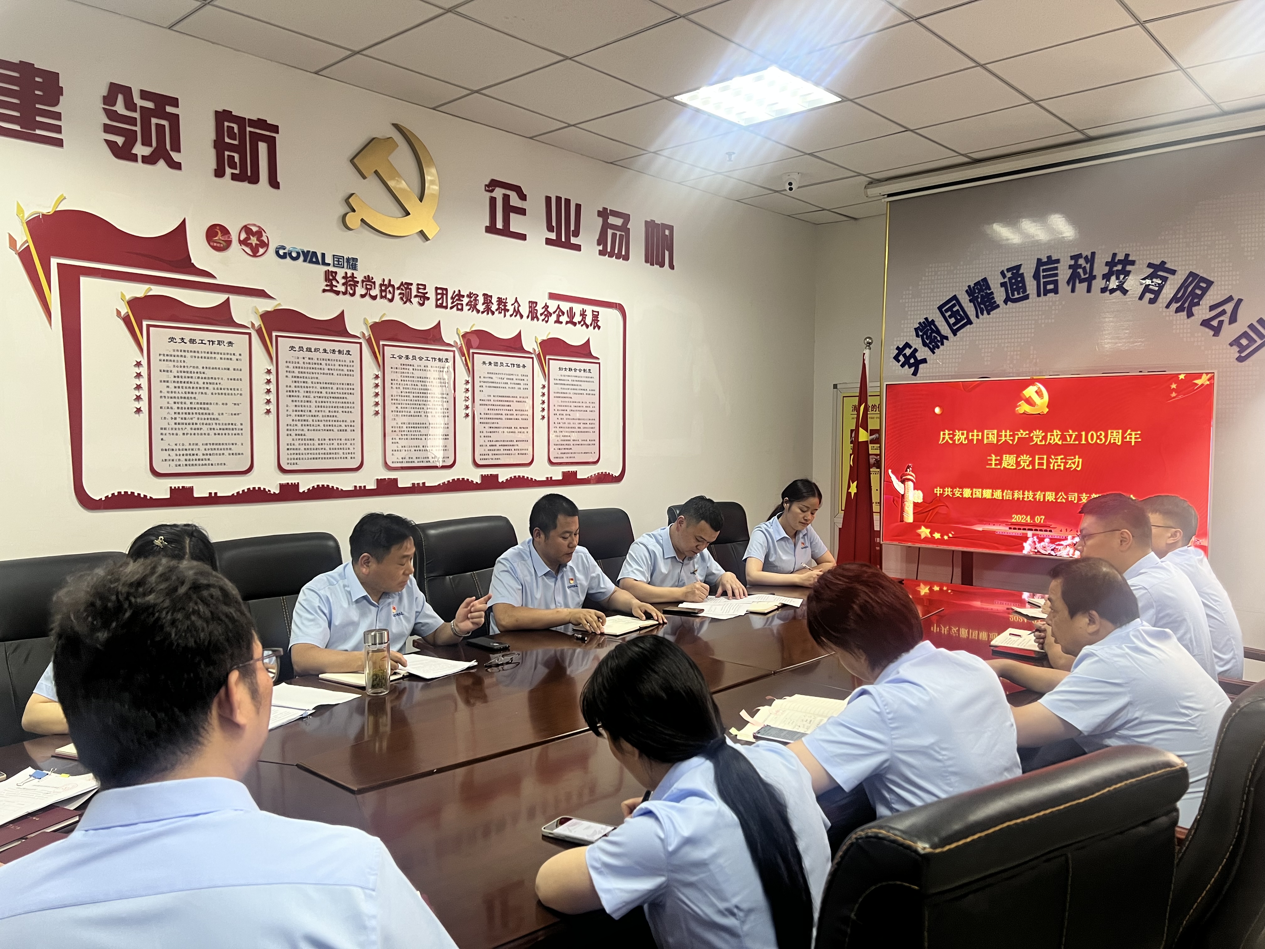 為慶祝中國共產(chǎn)黨成立103周年華誕,深入學(xué)習(xí)宣傳貫徹習(xí)近平新時代中國特色社會主義思想和黨的二十大精神,鞏固拓展主題教育成果,進(jìn)一步提高黨員干部的黨性修養(yǎng),堅定理想信念,激勵廣大黨員干部感悟紅色歷史,凝聚奮進(jìn)力量。7月1日,國耀公司全體黨員主題黨日活動形式慶祝中國共產(chǎn)黨成立103周年華誕。