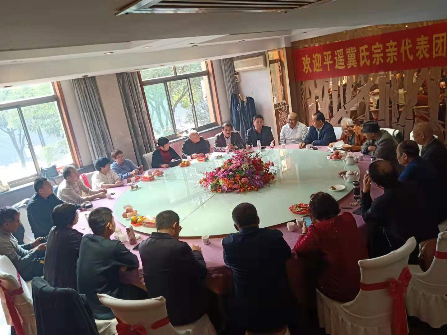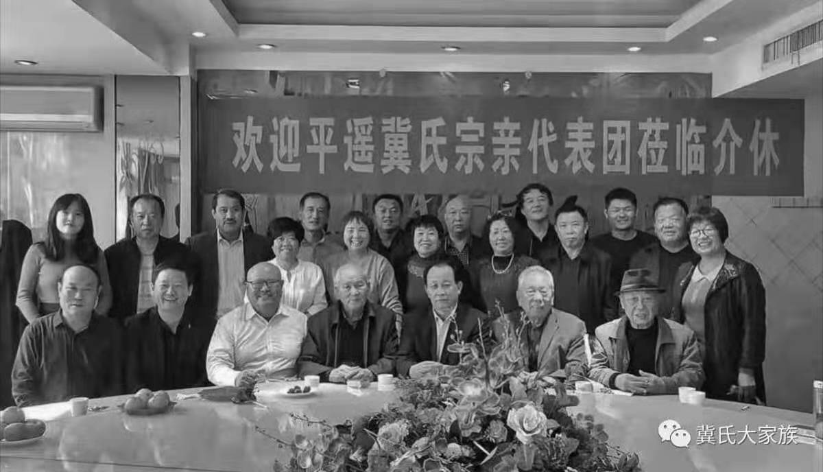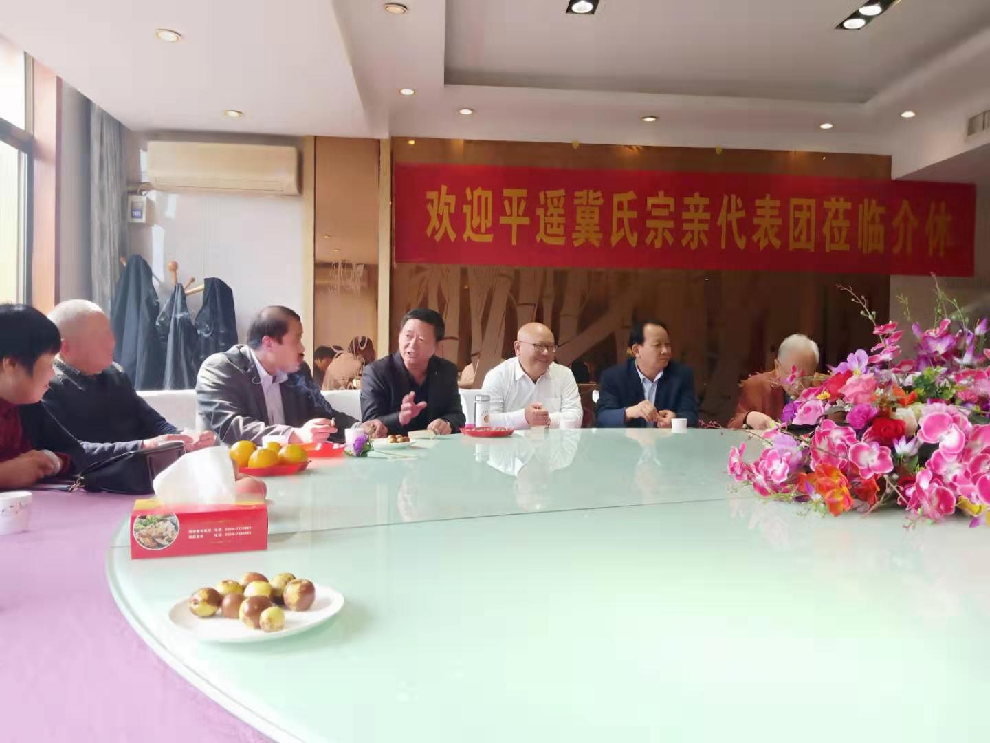 2019年10月19日,平遙縣冀氏文化研究會(huì)籌備組冀武業(yè)、冀有貴等一行14人到介休考察、交流成立文化研究會(huì)事宜。上午九點(diǎn)半許到達(dá)介休市海特大酒店,介休市冀氏文化研究會(huì)冀廣大會(huì)長(zhǎng)、冀錦富秘書長(zhǎng),還有副會(huì)長(zhǎng)冀守文、冀耀棟,家譜編委冀曉磊、冀娜,定居介休祖籍平遙的冀潤(rùn)民、冀秋芬會(huì)員等一同參加了接待會(huì)議。