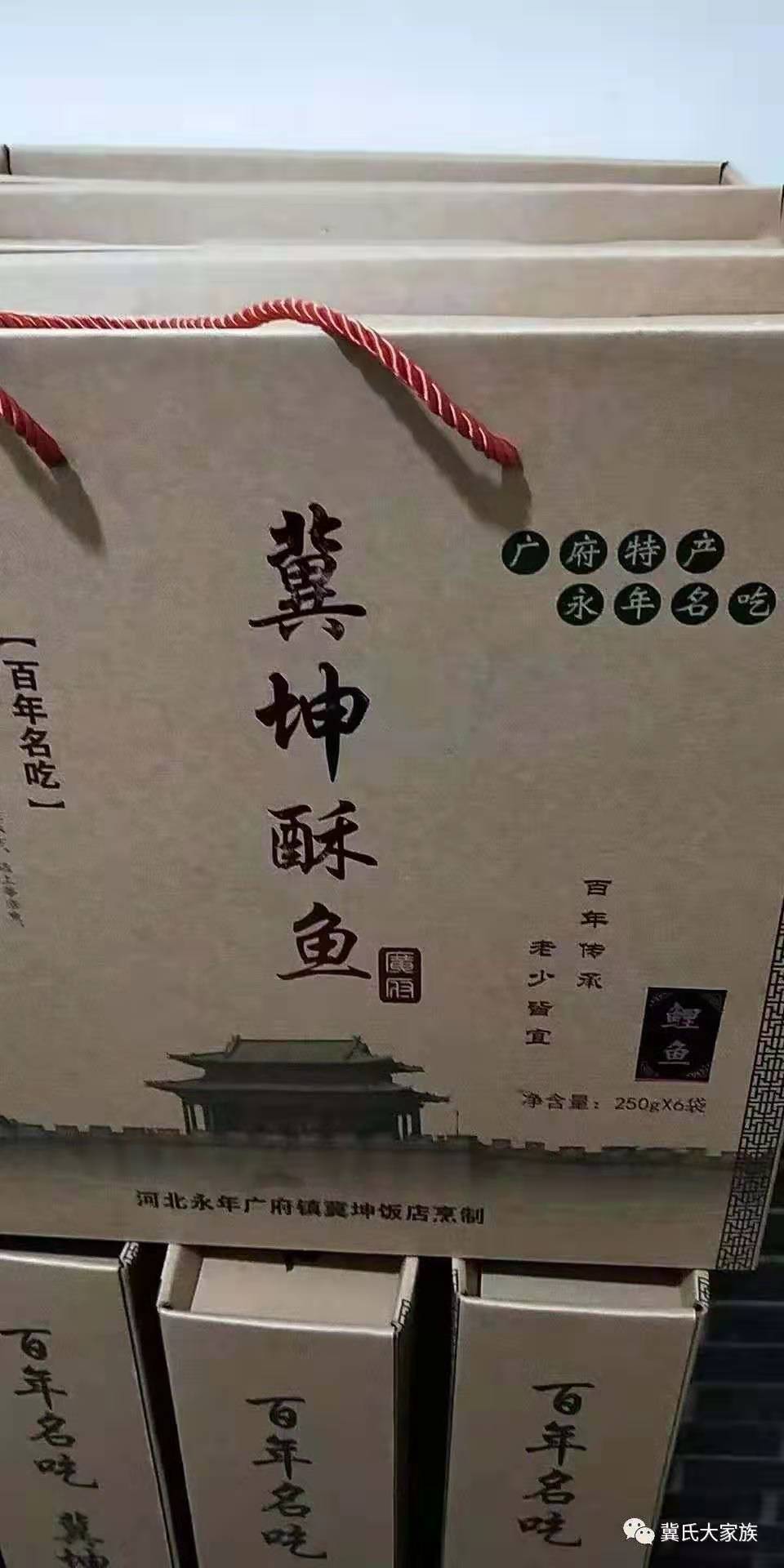 冀坤酥魚是河北省邯鄲市永年區(qū)廣府鎮(zhèn)冀志坤師傅在祖?zhèn)鱾鹘y(tǒng)工藝的基礎(chǔ)上,精選當(dāng)?shù)仵r活魚,科學(xué)研究,調(diào)配各種調(diào)料精制而成。其特點魚酥骨爛,魚形完整,老少皆宜,是居家食用,饋贈親友的最佳禮品!
