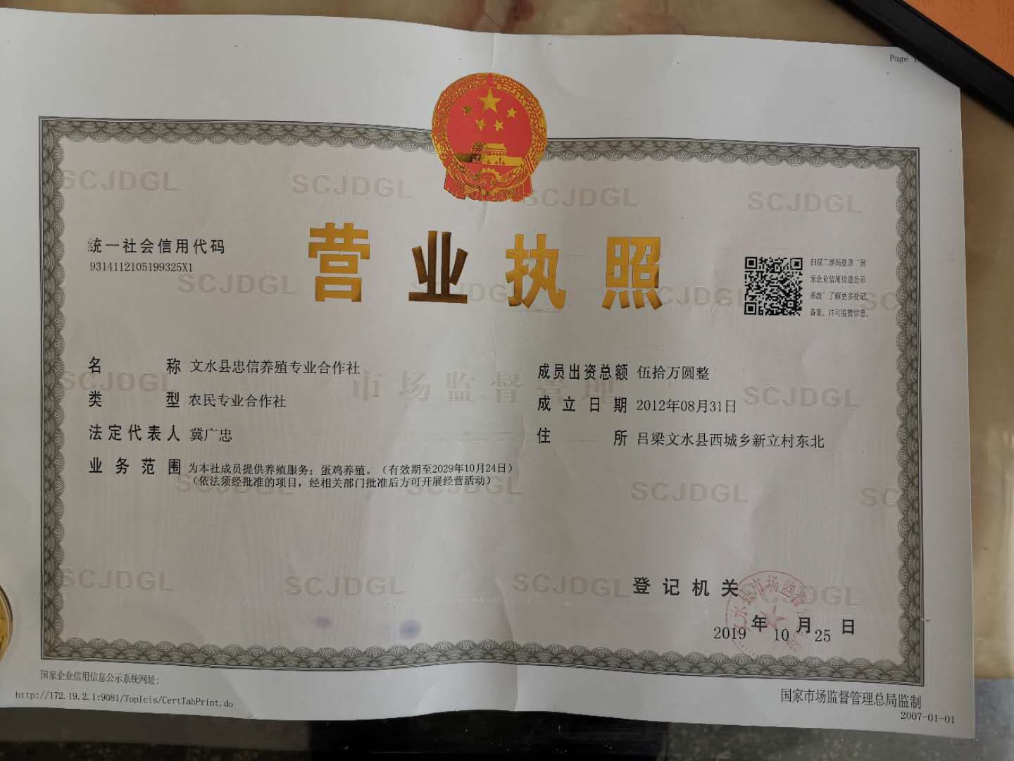 公司成立于2001年,前身叫“新立信德養(yǎng)殖場”、“信德禽蛋服務有限公司”,2012年變更為“文水縣忠信養(yǎng)殖專業(yè)合作社”。本公司是集蛋雞養(yǎng)殖、飼料加工、防疫指導、禽蛋銷售為一體的大型養(yǎng)殖企業(yè),下轄三個養(yǎng)殖場,一個飼料加工車間,現(xiàn)有員工30余人,存欄蛋雞12萬只,年產(chǎn)蛋300多萬斤,年產(chǎn)值達1000多萬元,目前是交城縣、文水縣一帶最大的養(yǎng)殖企業(yè)。