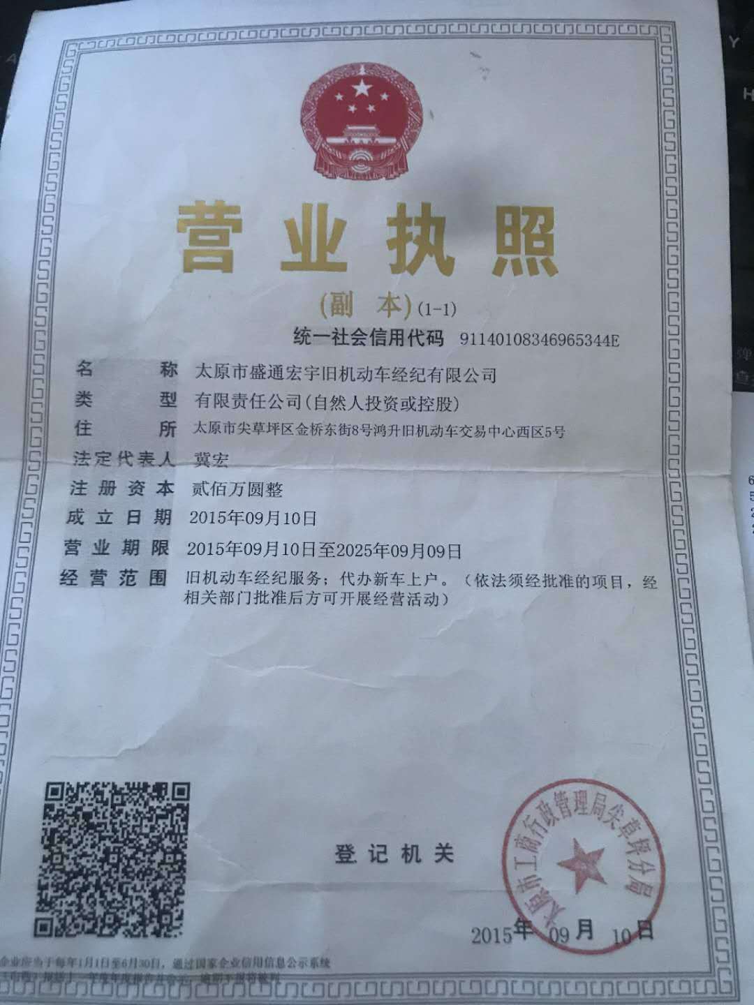 企業(yè)名稱:太原市盛通宏宇舊機動車經(jīng)紀有限公司(宏宇精品二手車行)