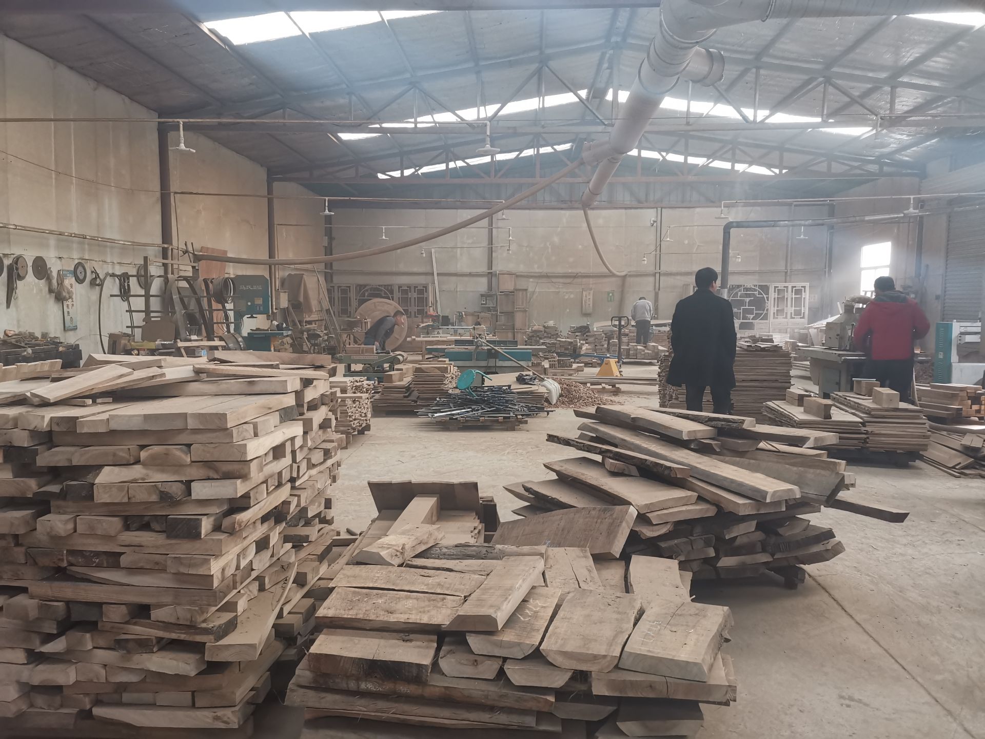 在公司貨場可看到實實在在的核桃樹木材,所做家具貨真價實。