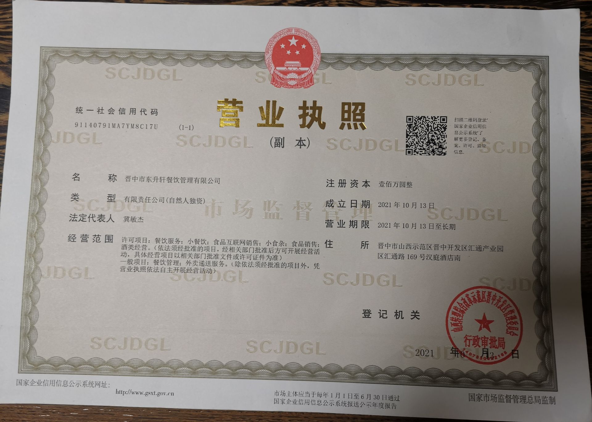 企業(yè)名稱:晉中市東升軒餐飲管理有限公司
