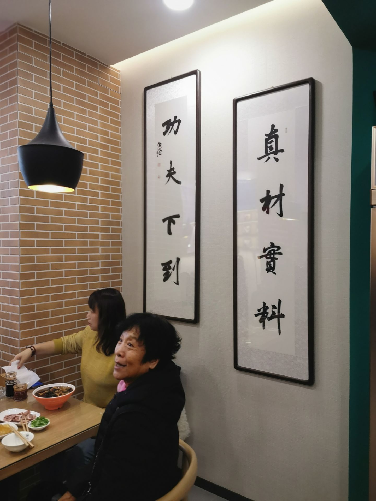 面館開業(yè)前,80多歲的老父親送冀敏杰八個字“真材實料、功夫下到”,冀敏杰記在心里,落實在行動上,他把八個大字懸掛在面館內(nèi)顯眼位置,以時刻提醒自己;他開創(chuàng)了食面特色:手工撥面,除傳統(tǒng)打鹵外,還有過油肉等各種哨子,12元一碗面可隨時添加,直至吃飽。所以,吃面的人特別多,沒有座位就站著吃。