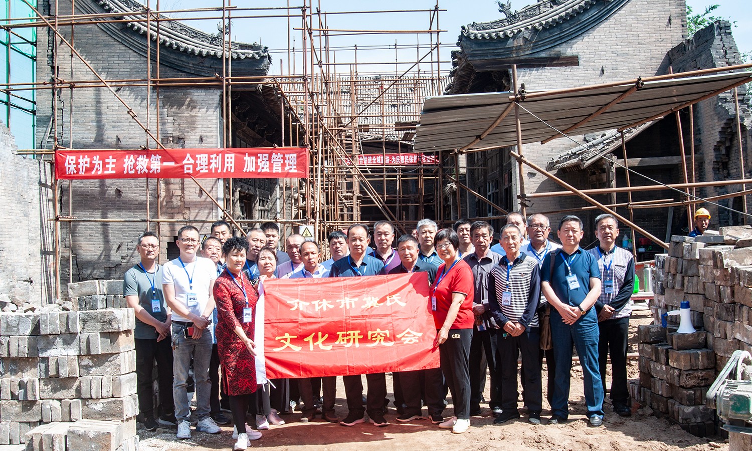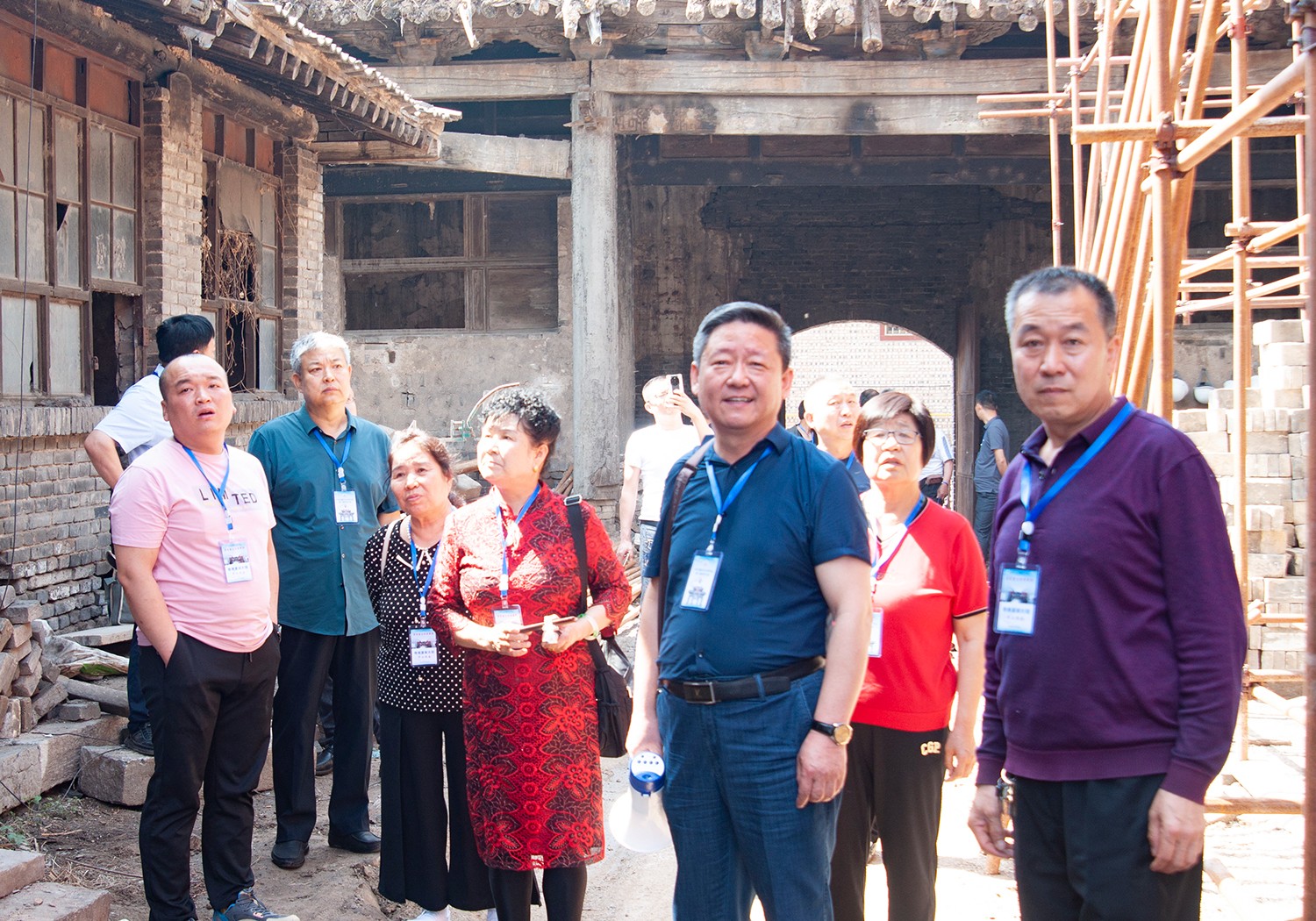 簽到之后,大家一起來到敦信堂,觀摩正在修繕中的大院,會員們看到緊張的施工場面,高興的笑了,修繕冀家大院是每一位冀氏族人的迫切愿望!冀家大院是晉商冀家的文化遺存,敦信堂是晉商冀家精神的見證!