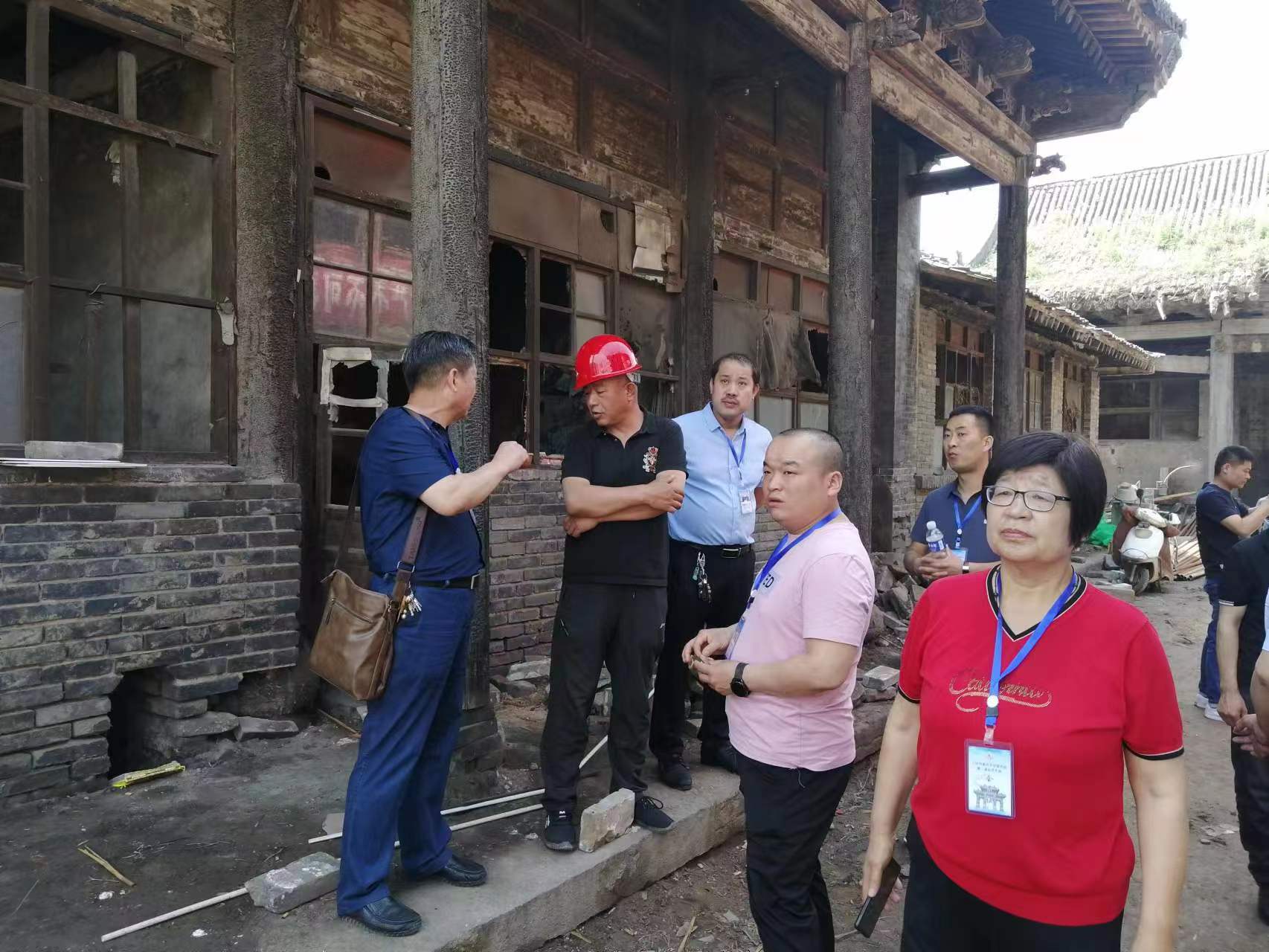 冀氏文化研究會冀廣大會長,冀錦富秘書長與施工技術(shù)人員交流古跡的修復(fù)情況。參會會員在大院合影留念,記住這一時刻,定格這一瞬間,明年的現(xiàn)在將是一個嶄新的冀家大院。