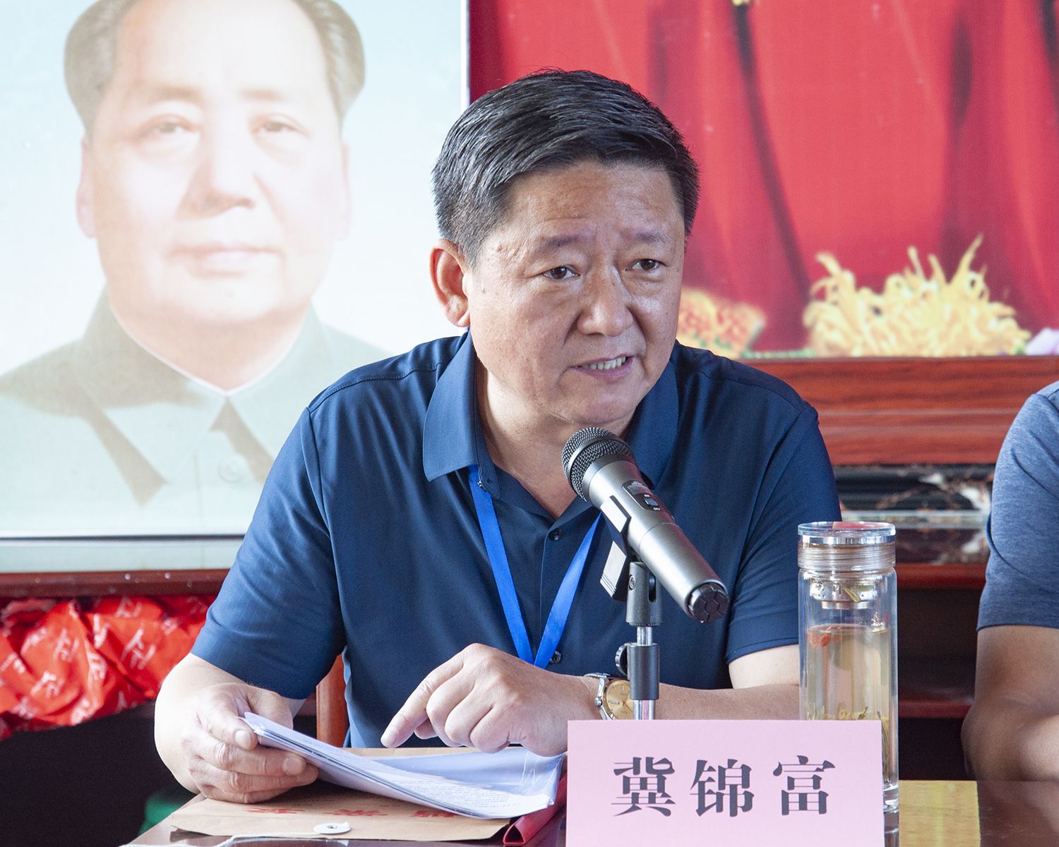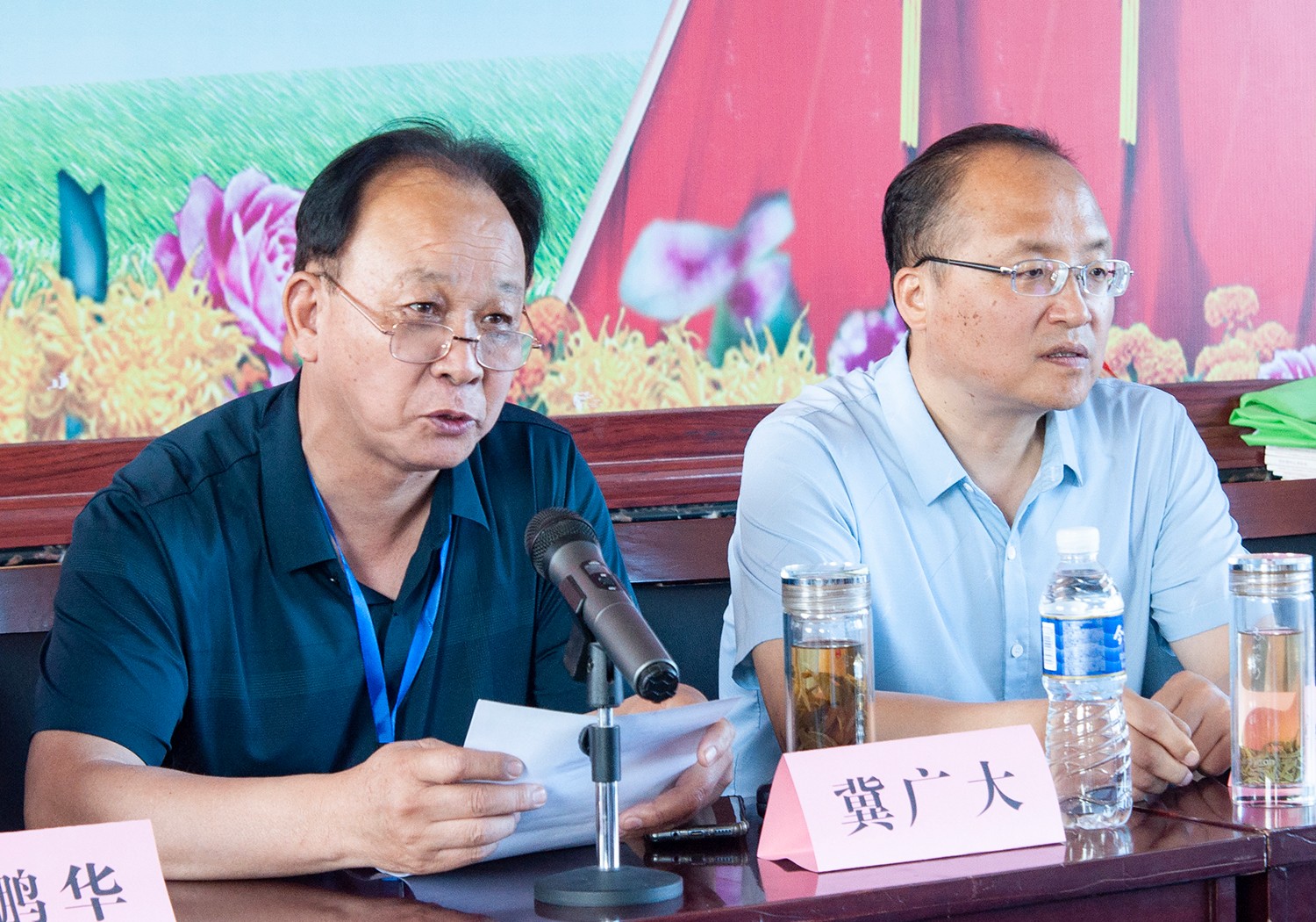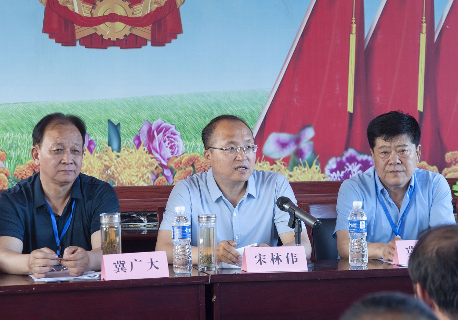 議程第十三項,介休市文化和旅游局宋林偉局長講話,宋局長對冀氏文化研究會第一屆理事會三年來的工作做了肯定,冀氏文化研究會成績有目共睹,出版發(fā)行了《晉商冀家》圖書,重走萬里茶道,為介休申辦萬里茶道節(jié)點(diǎn)城市作出了很大的努力;指出了晉商冀家的文化內(nèi)涵,冀家“巨盛川”茶行在萬里茶道中起著舉足輕重的作用,特別是馬太夫人是晉商的代表人物,是清代女企業(yè)家;最后給冀氏文化研究會提出三點(diǎn)希望,1、推進(jìn)研究文化向縱深發(fā)展,挖掘晉商文化內(nèi)涵,以優(yōu)異成績迎接黨的二十大勝利召開;2、北辛武有國?!傲鹆品弧保惺斜!凹郊掖笤骸?,大家要積極參與文物的保護(hù)和修繕,宣傳晉商文化,講好冀家故事,后期要發(fā)動企業(yè)家籌資完善冀家大院;3、大力培養(yǎng)新人,研究會要民主決策,調(diào)動積極性,將研究會的工作再上臺階。
