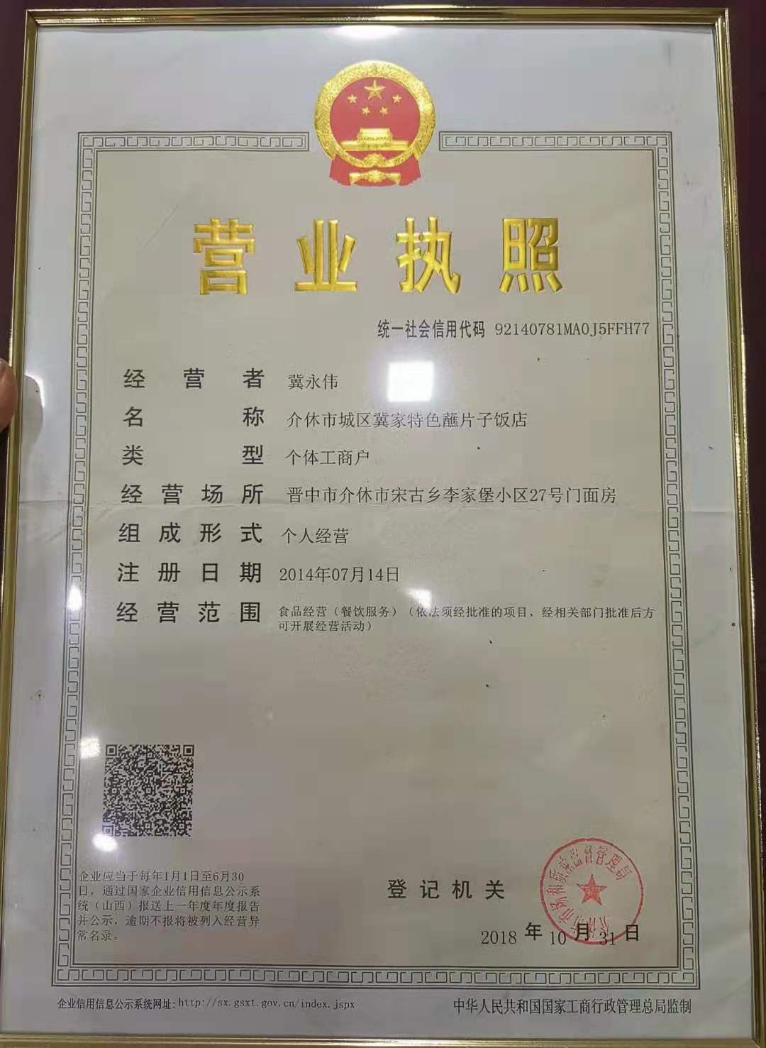 飯店名稱:介休市城區(qū)冀家特色蘸片子飯店