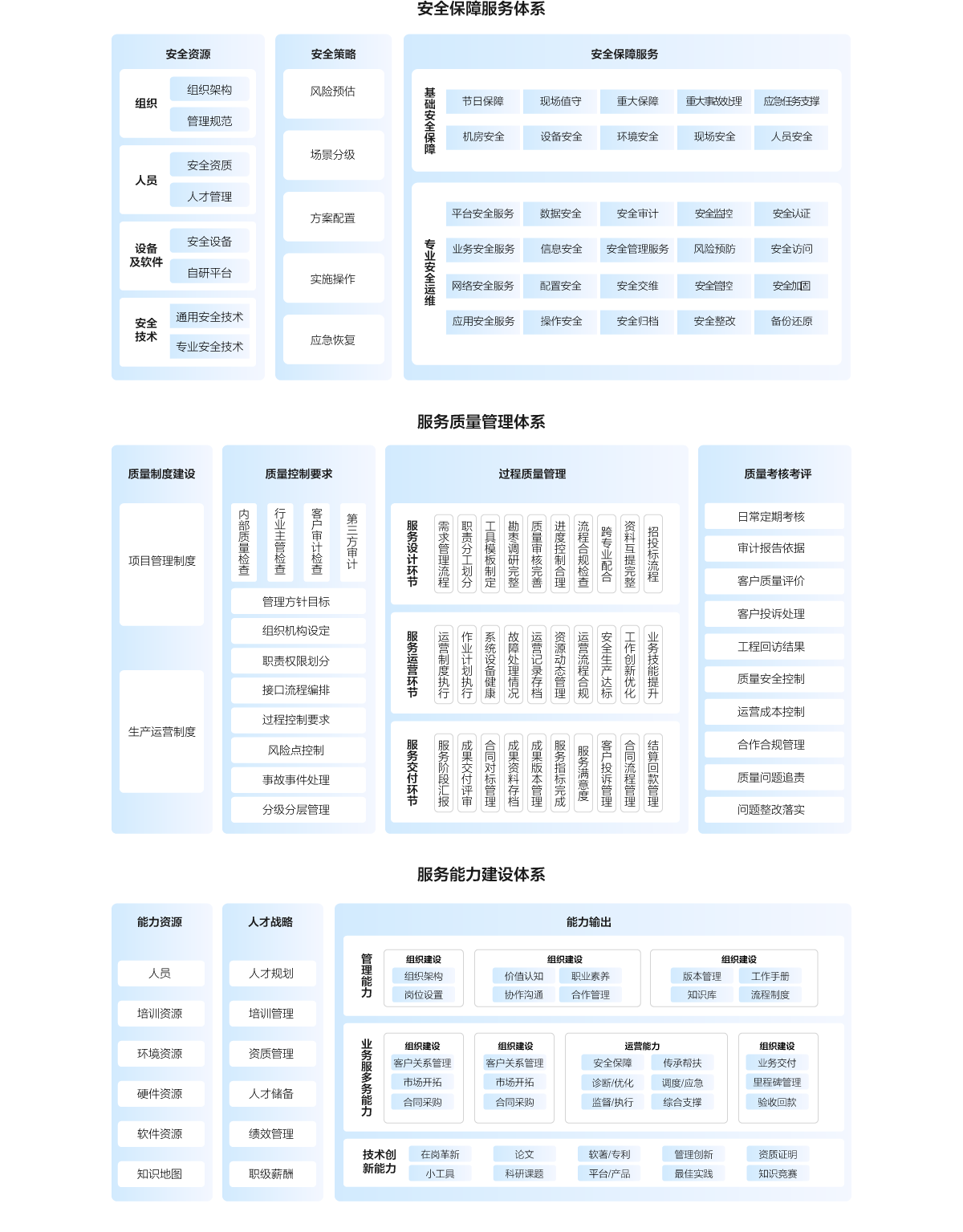 ITSS運(yùn)維概述ITSS(Information Technology Service Standards,信息技術(shù)服務(wù)標(biāo)準(zhǔn))就是在這種情況下應(yīng)運(yùn)而生的,它在工信部、國(guó)家標(biāo)準(zhǔn)化管理委員會(huì)聯(lián)合指導(dǎo)下,由國(guó)家標(biāo)準(zhǔn)化工作組提出,是國(guó)內(nèi)第一套成熟的體系化IT服務(wù)標(biāo)準(zhǔn)庫(kù),為國(guó)內(nèi)從事IT服務(wù)的企業(yè)、公司及個(gè)人提供了依據(jù)和標(biāo)準(zhǔn),極大促進(jìn)了國(guó)內(nèi)IT運(yùn)維技術(shù)的發(fā)展。IT運(yùn)維服務(wù)體系認(rèn)為IT服務(wù)主要由人員、資源、產(chǎn)品和服務(wù)管理組成,并對(duì)這些IT服務(wù)的組成要素進(jìn)行說明和標(biāo)準(zhǔn)化。其服務(wù)體系主要由安全保障服務(wù)體系、服務(wù)質(zhì)量管理體系和服務(wù)能力建設(shè)體系組成。